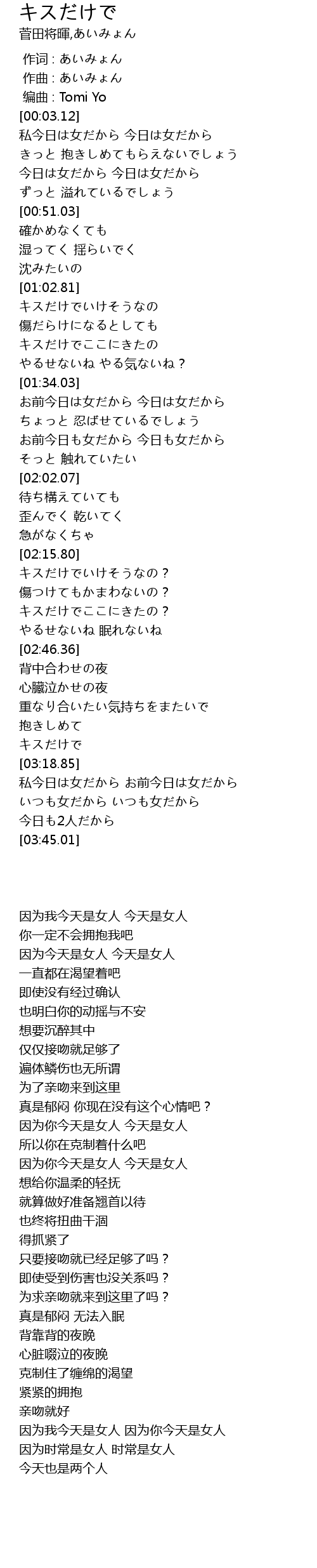 | [03:19.25] | 私今日は女だから お前今日は女だから |