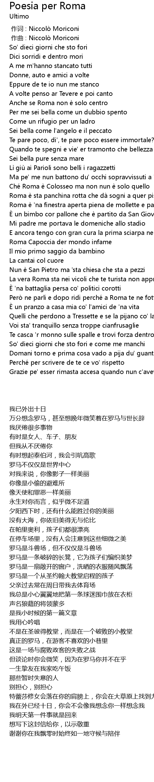| [00:38.88] | Ché Roma è Colosseo ma non nun è solo quello |