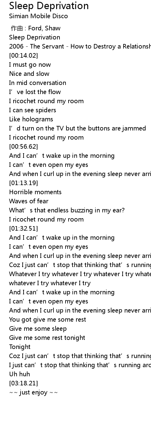 | [01:04.60] | And when I curl up in the evening sleep never arrives |