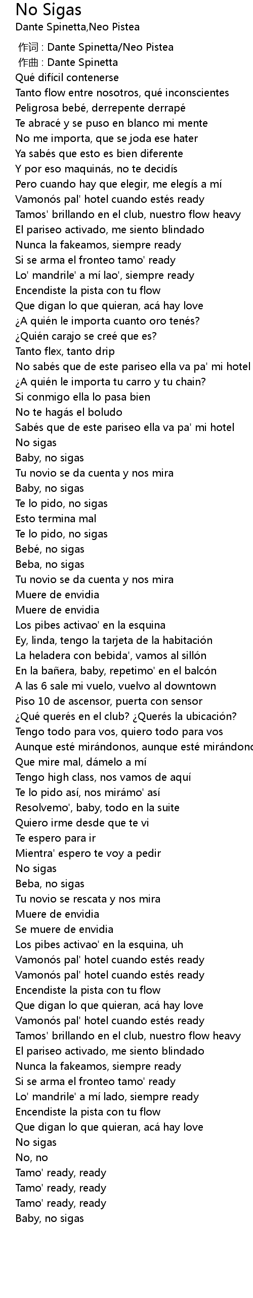 | [02:19.73] | Vamono s pal' hotel cuando este s ready |
