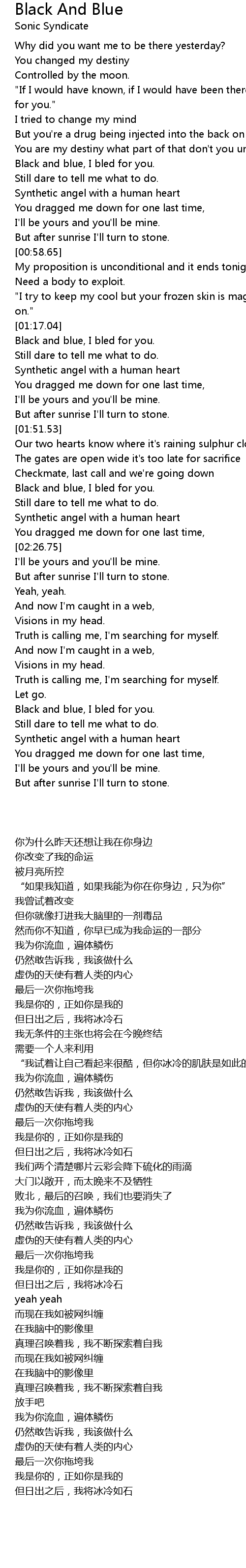 Black and blue, I bled for you. |