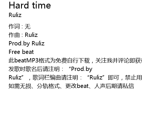 | 发歌时歌名后请注明:“Prod.by Ruliz”,歌词栏编曲请注明:“Ruliz”即可,禁止用于商业性质,尊重知识产权,侵权必究,谢谢。 | |