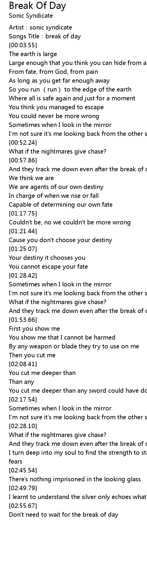 | [00:01.80] | Songs Title:break of day |