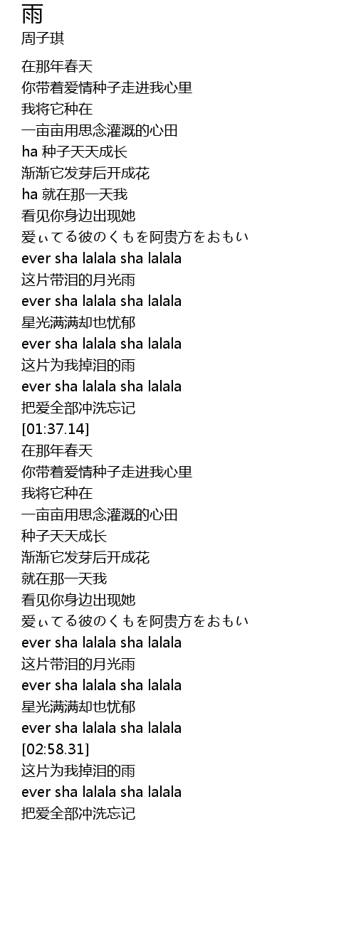 | [03:06.71] | 把爱全部冲洗忘记 |