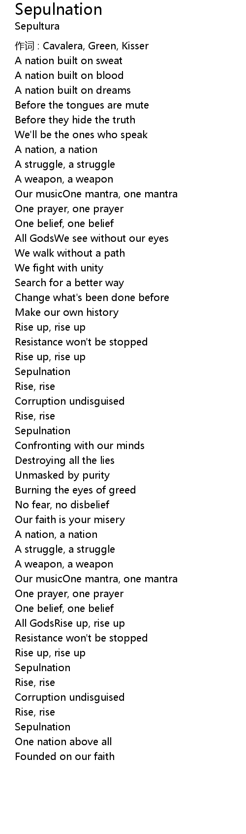 | 作词 : Cavalera, Green, Kisser | |