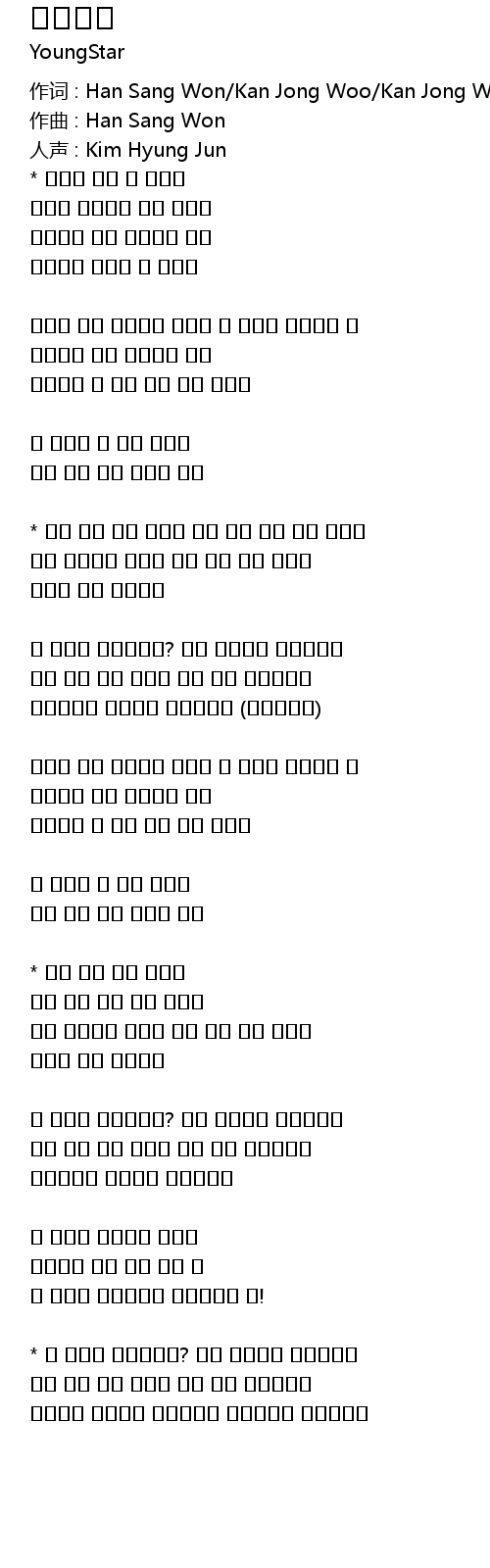 作词 : Han Sang Won/Kan Jong Woo/Kan Jong Wook |
