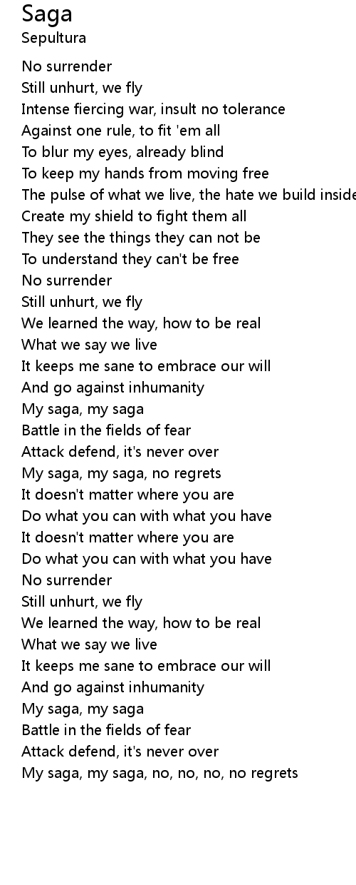 | My saga, my saga, no, no, no, no regrets |