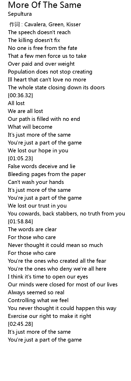 | [00:55.98] | It's just more of the same |
