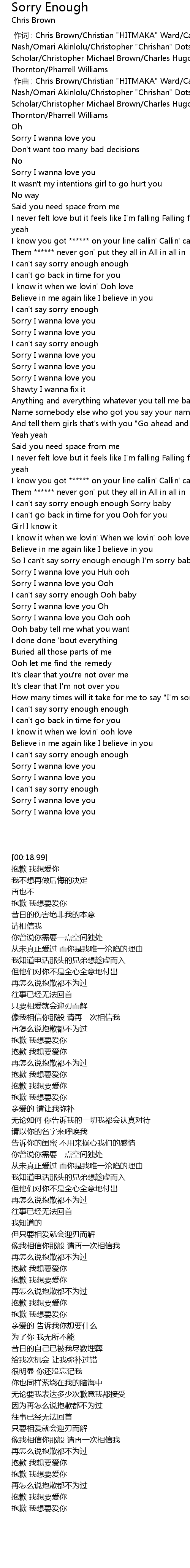 | [02:18.12] | I can' t say sorry enough enough Sorry baby |