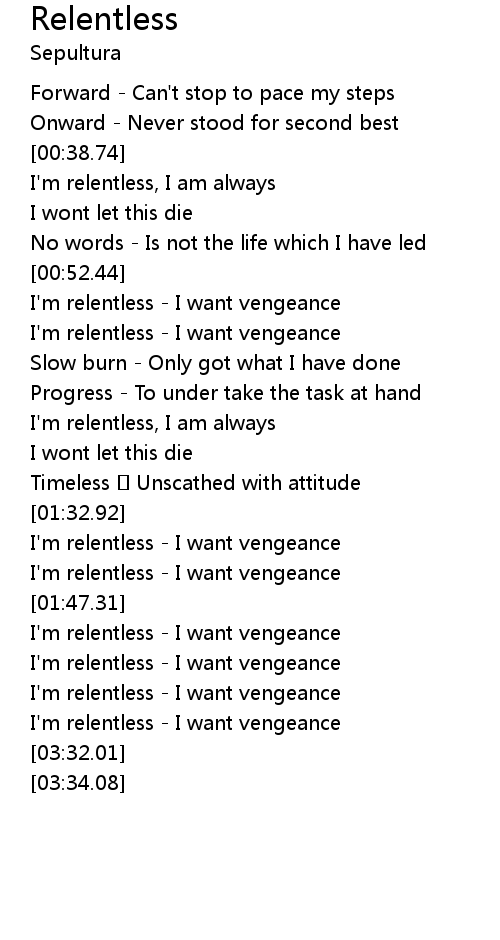 | [01:37.72] | I'm relentless - I want vengeance |