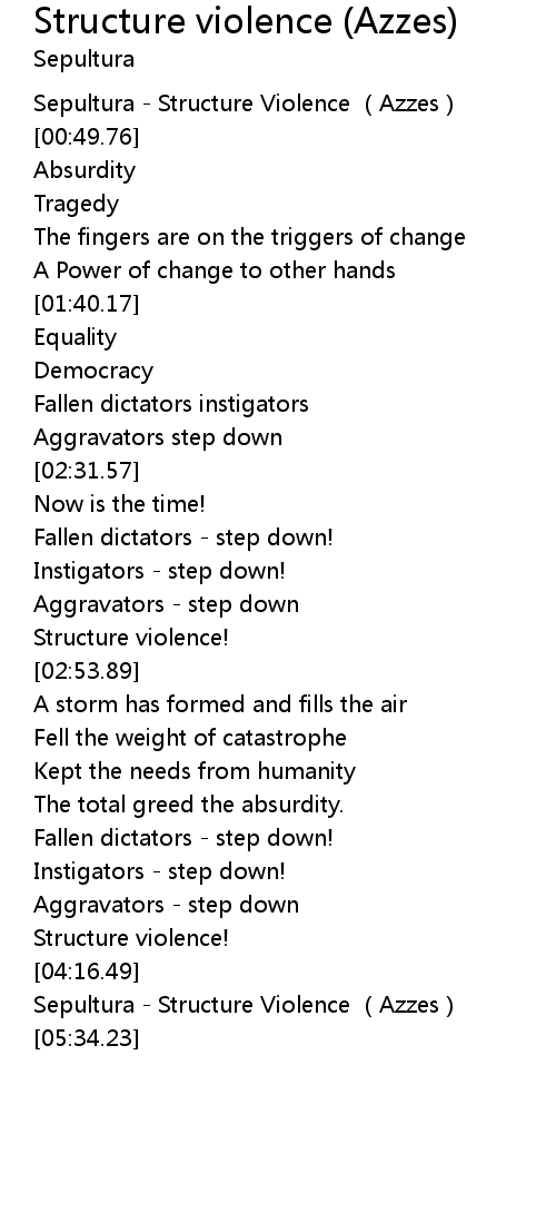 | [00:01.50] | Sepultura Structure Violence Azzes |