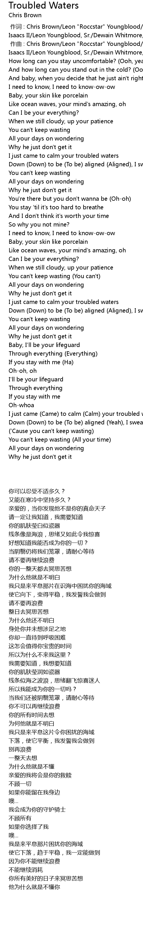 | [00:00.00] | zuò cí : Chris Brown Leon " Roccstar" Youngblood Andre Harris Alvin Isaacs II Leon Youngblood, Sr. Dewain Whitmore, Jr. Mark Pitts |