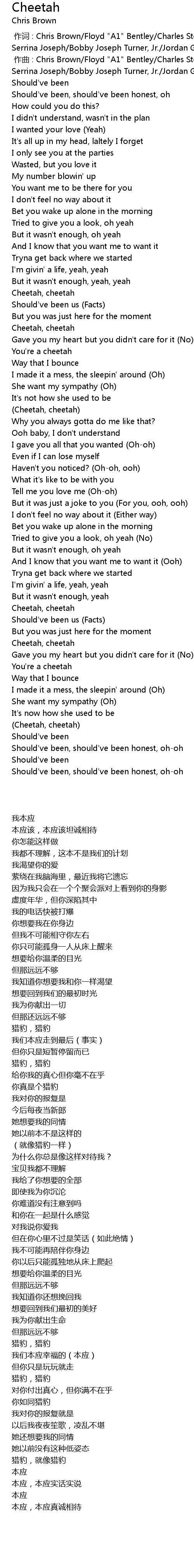 | [02:11.45] | (Cheetah, cheetah) |