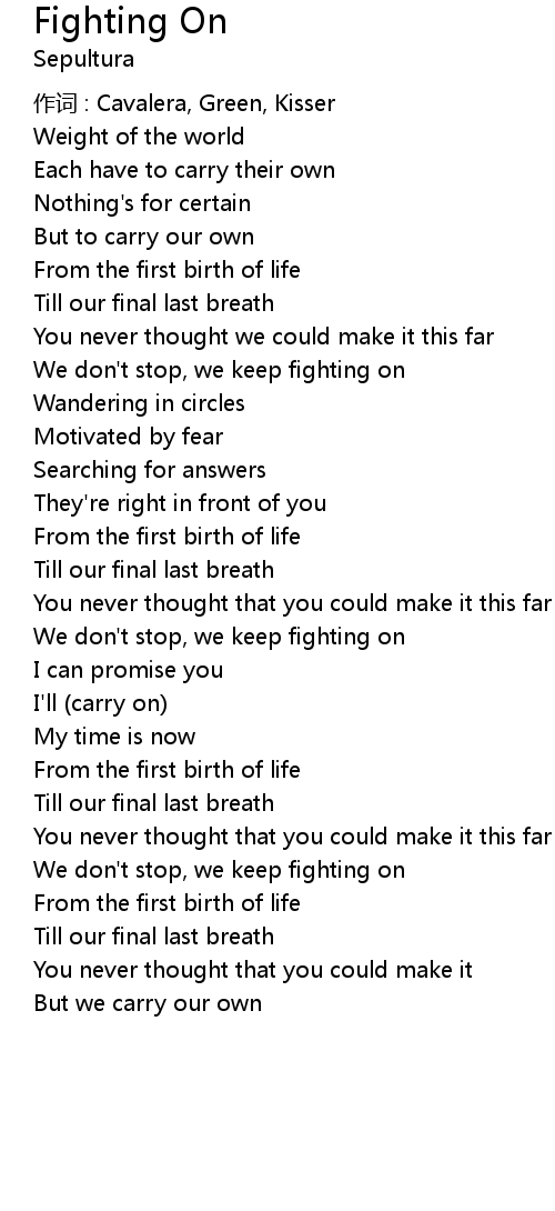 | We don't stop, we keep fighting on | |