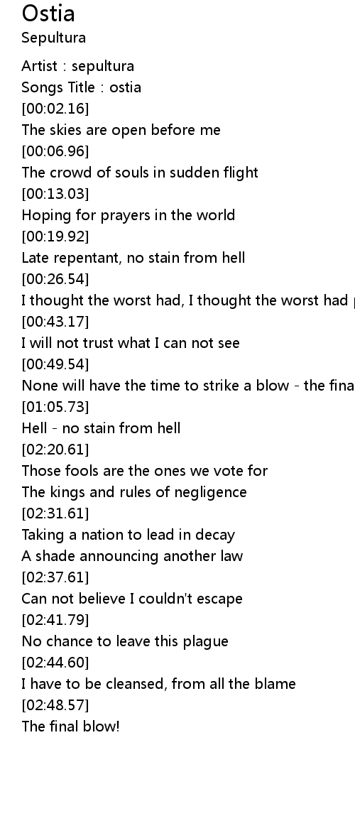 | [02:45.48] | I have to be cleansed, from all the blame |