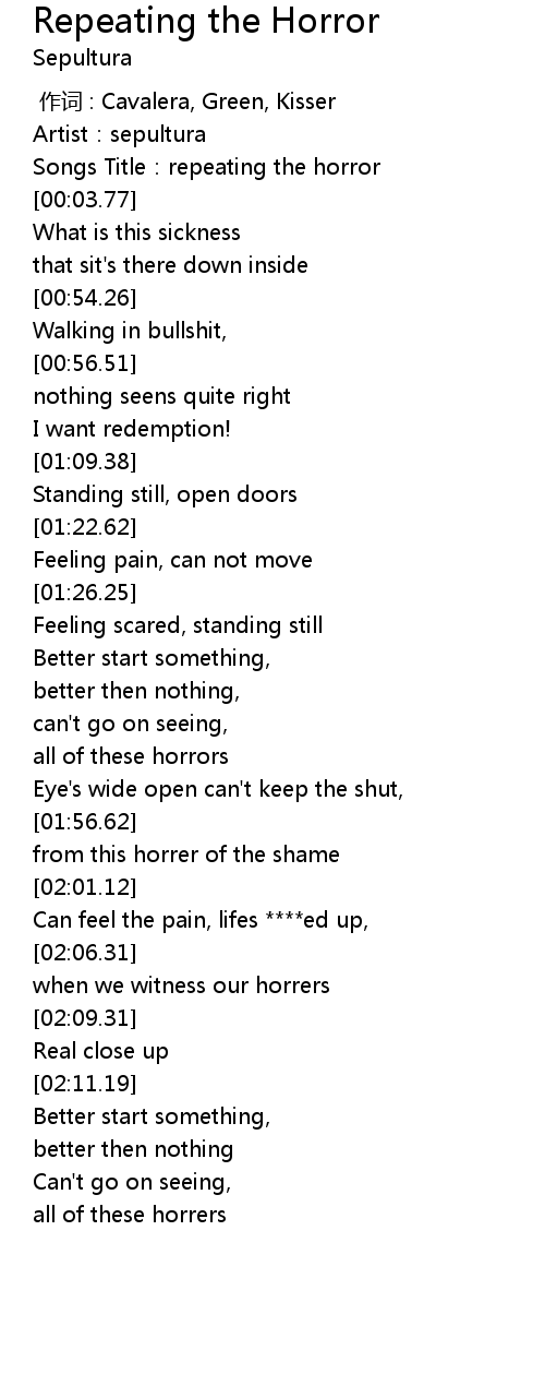 | [00:01.77] | Songs Title:repeating the horror |
