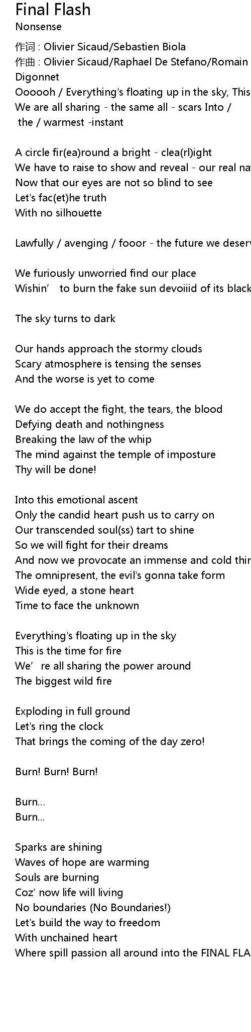| 作词 : Olivier Sicaud/Sebastien Biola | |