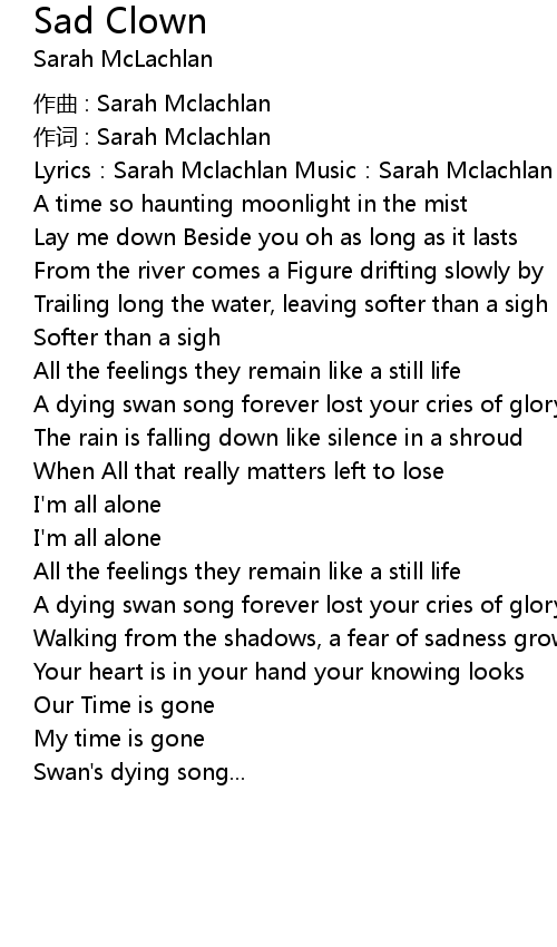 | Lyrics: Sarah Mclachlan Music: Sarah Mclachlan | |