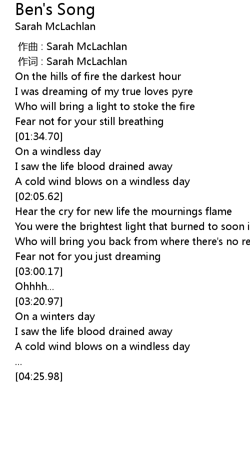 | [00:01.00] | 作词 : Sarah McLachlan |