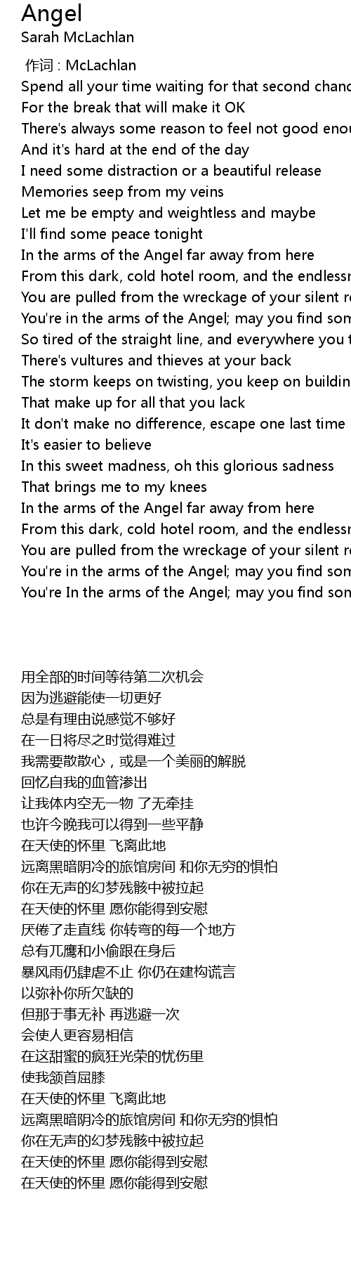 | [03:47.0] | You're In the arms of the Angel; may you find some comfort here |