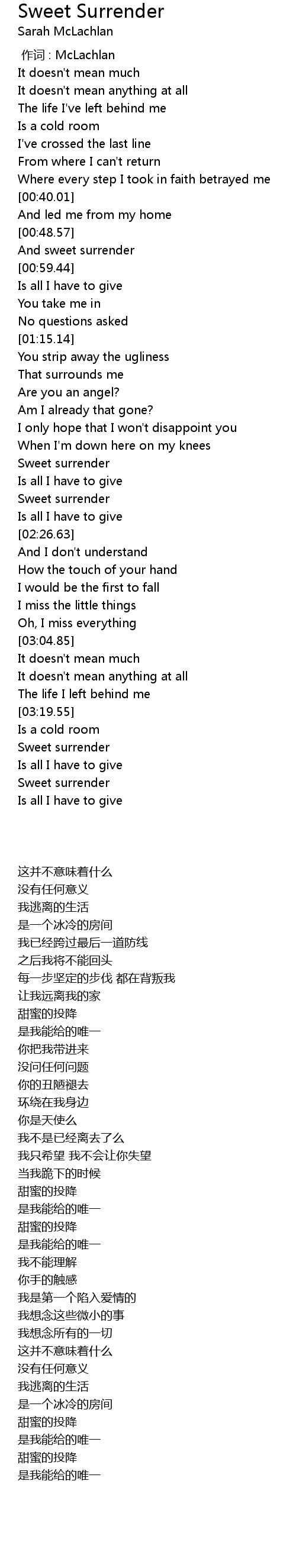 | [03:25.68] | Sweet surrender |