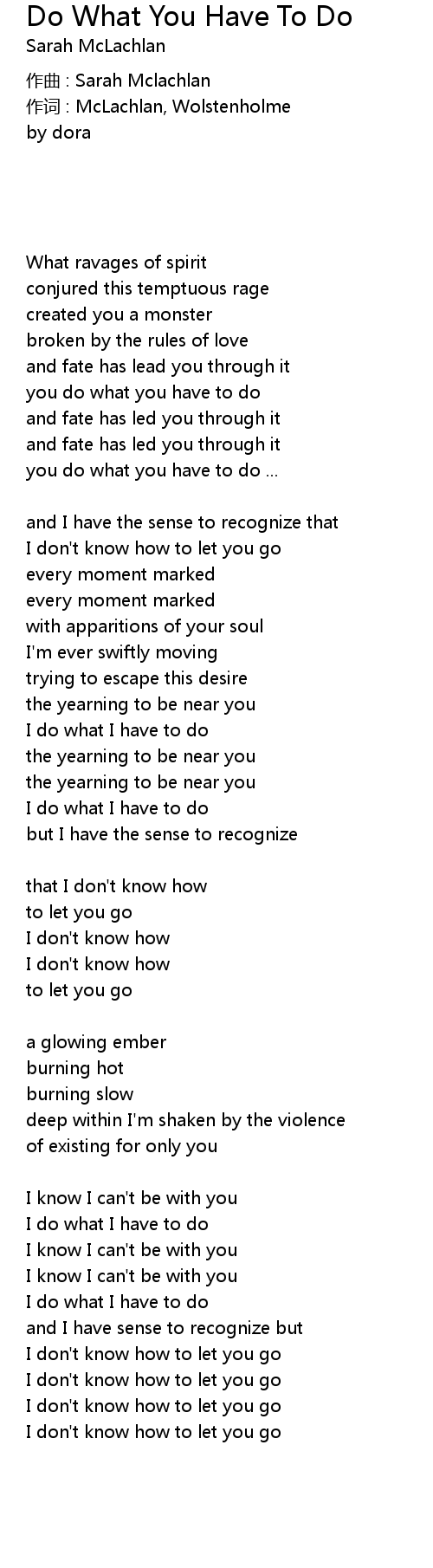 | zuò qǔ : Sarah Mclachlan | |