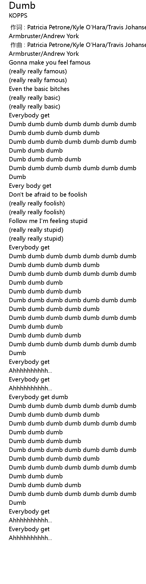 | [01:07.456] | Dumb dumb dumb dumb dumb dumb dumb |