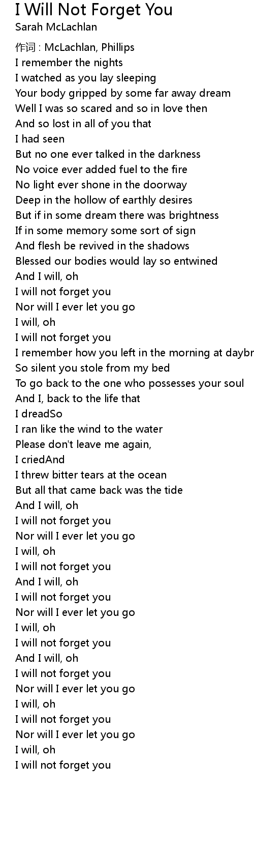 | I will not forget you | |