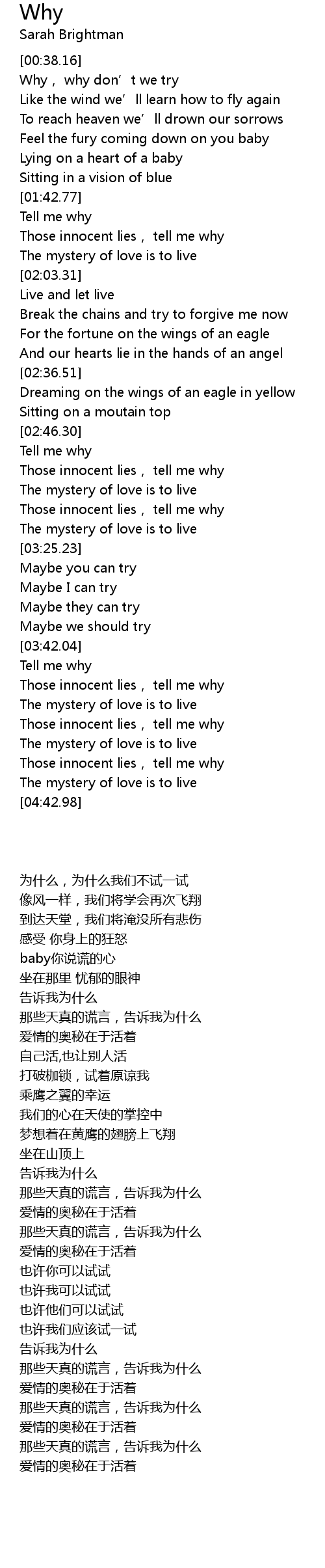 | [04:23.49] | Those innocent lies, tell me why |