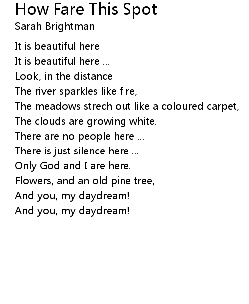 | Song | How Fare This Spot |