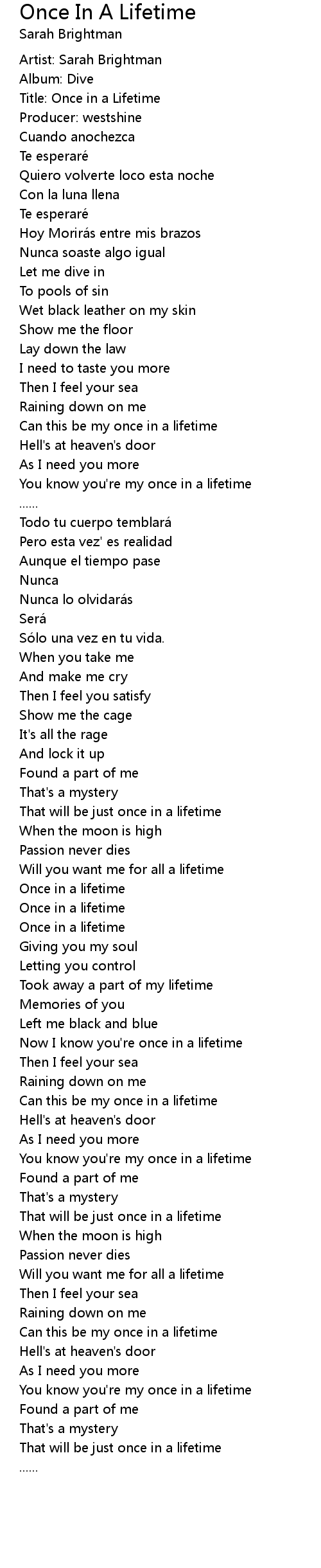 | [01:48.48] | So lo una vez en tu vida. |