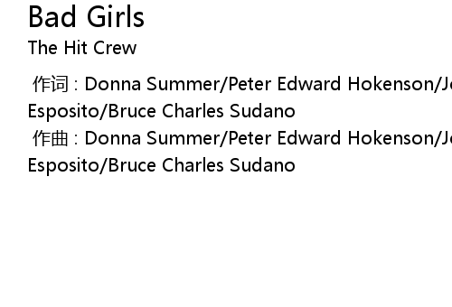 | [00:00.00-1] | zuo qu : Donna Summer Peter Edward Hokenson Joe " Bean" Esposito Bruce Charles Sudano |