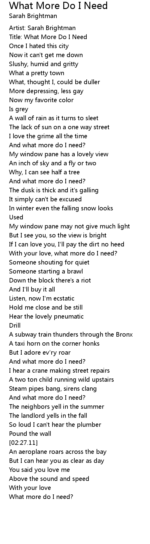 Title: What More Do I Need |