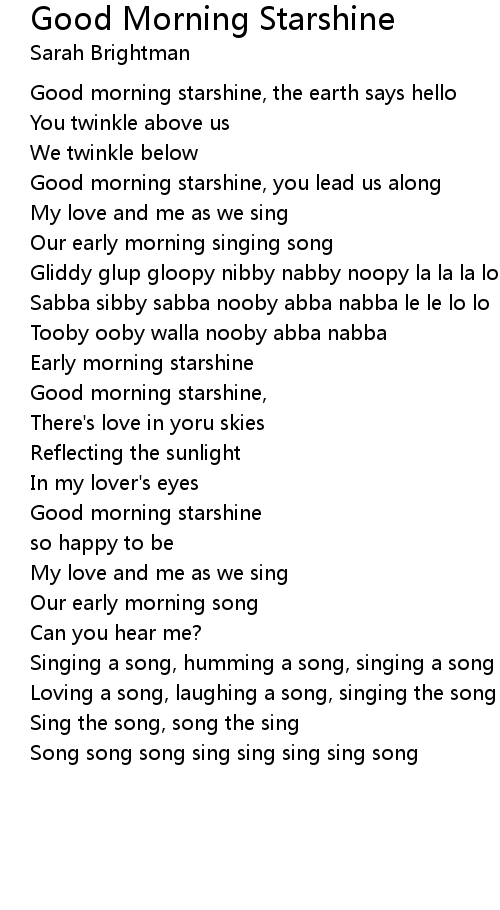 Good morning starshine, you lead us along |