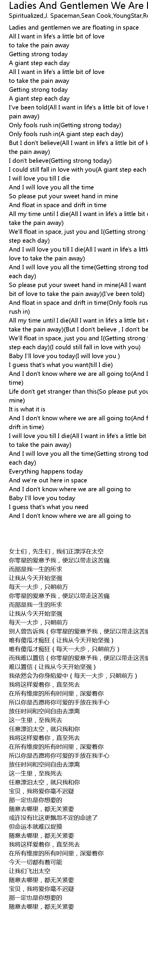 | [00:00.00] | Ladies and gentlemen we are floating in space |