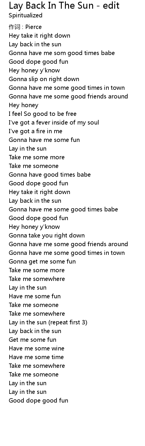 | Lay in the sun (repeat first 3) | |