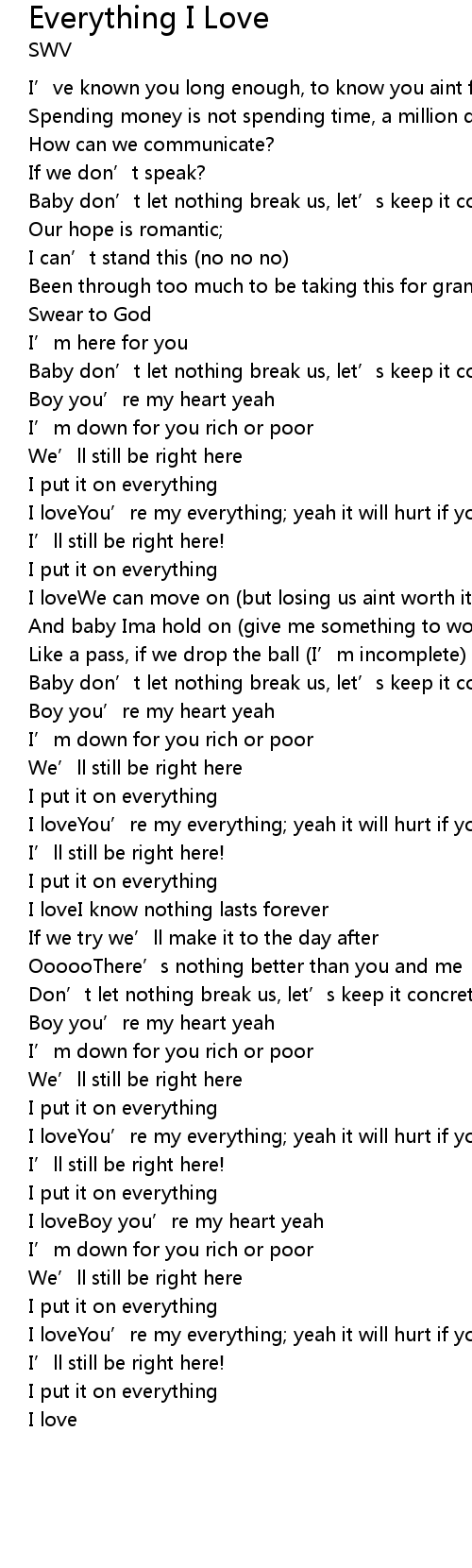 | I loveYou’re my everything; yeah it will hurt if you leave | |