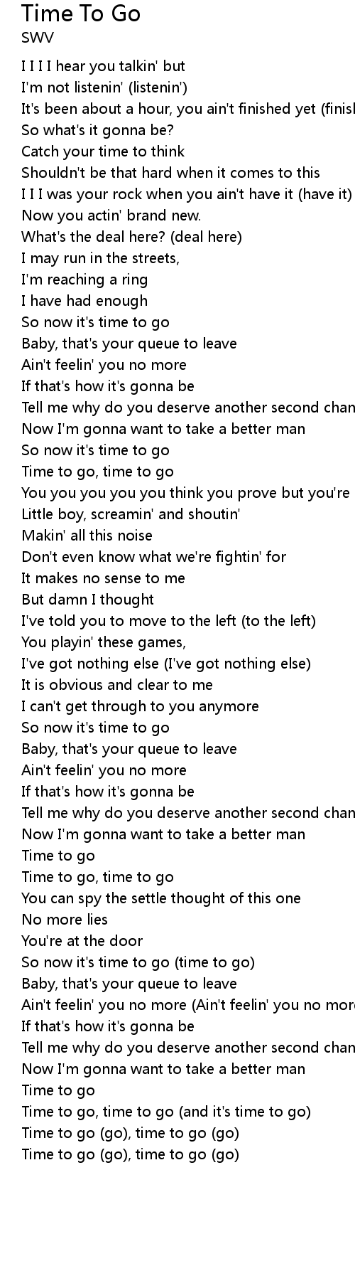 Time to go (go), time to go (go) |
