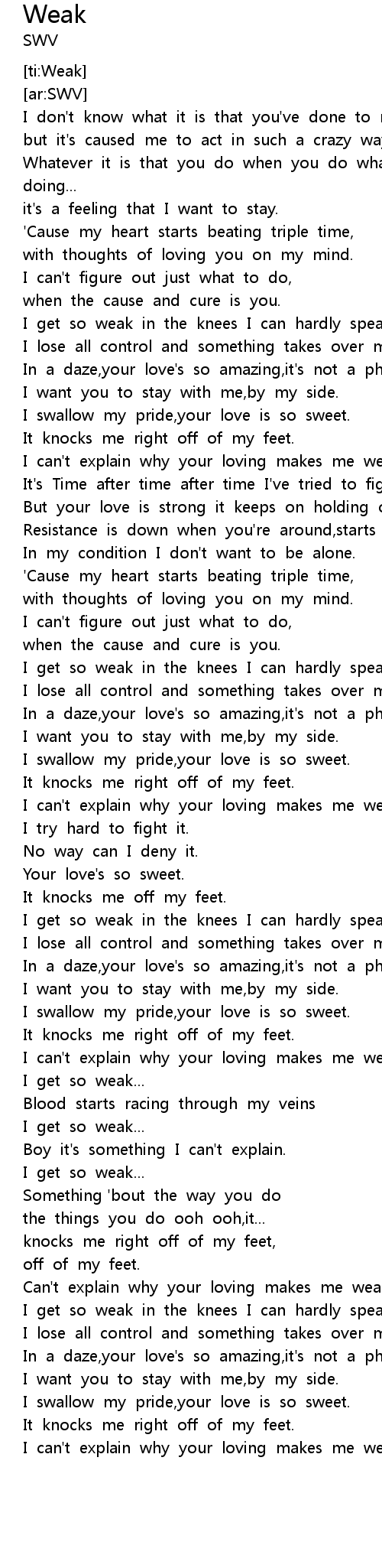Can't explain why your loving makes me weak. |