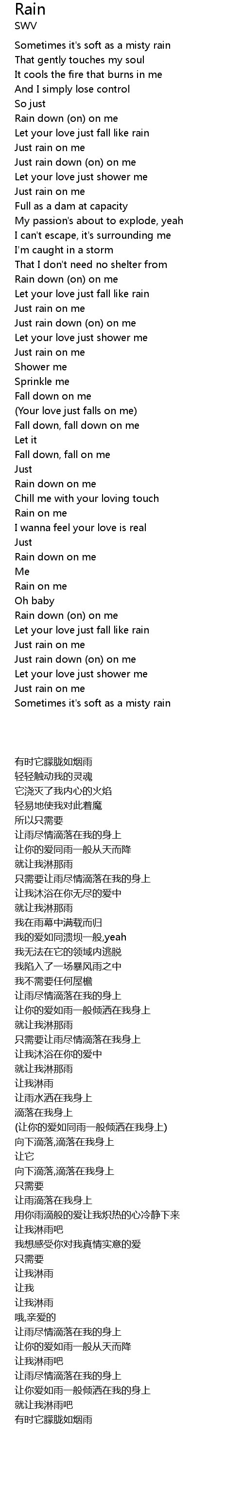 Rain down (on) on me |