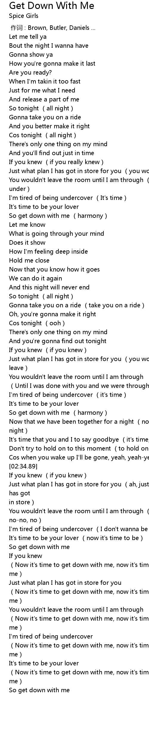 | [03:15.74] | (Now it's time to get down with me, now it's time to get down with me) |