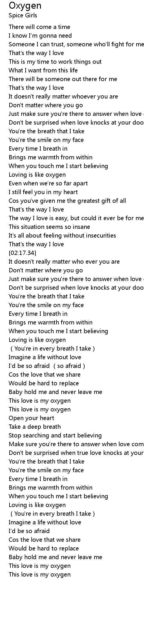 | [04:04.13] | Loving is like oxygen |