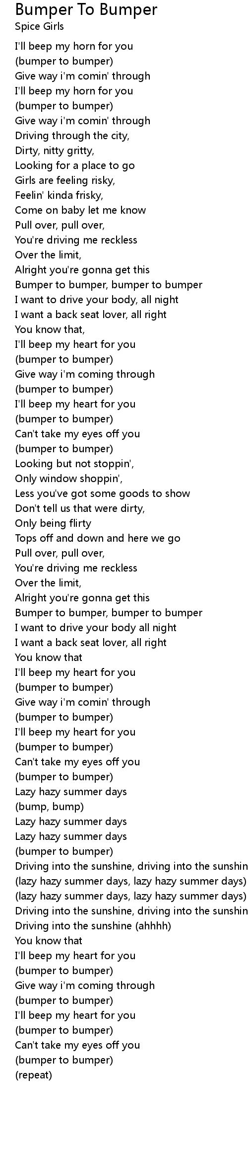 Bumper to bumper, bumper to bumper |