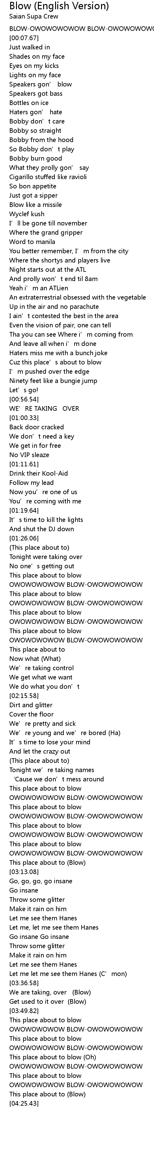 | [04:01.71] | OWOWOWOWOW BLOW-OWOWOWOWOW |