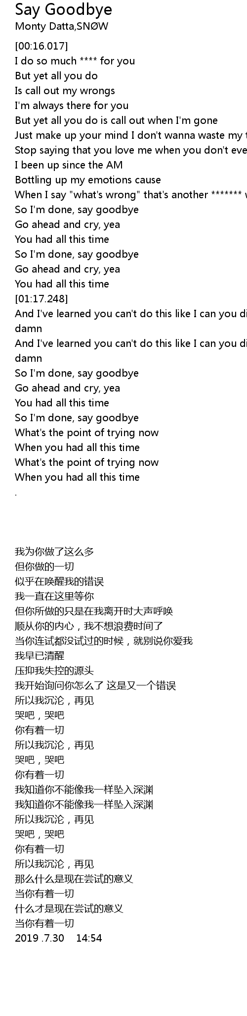So I'm done, say goodbye |