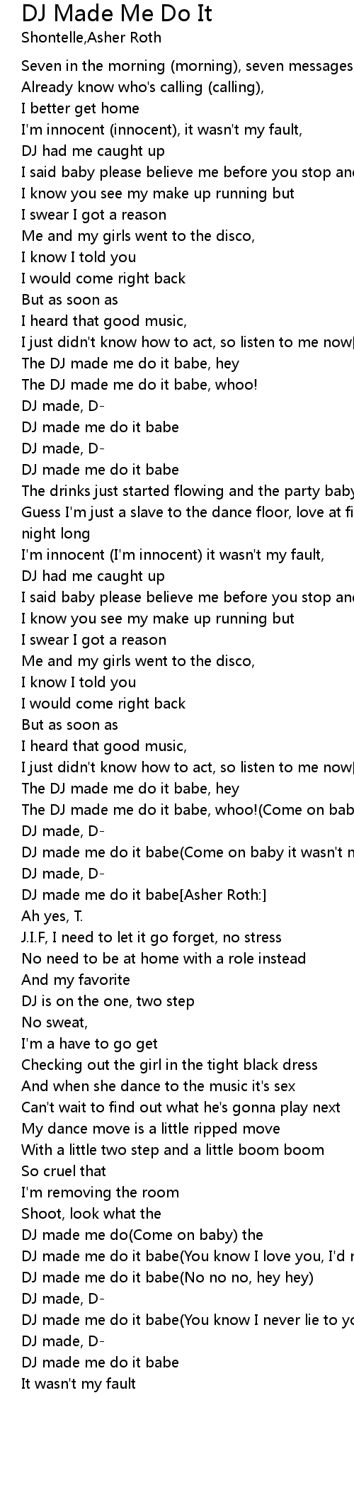 DJ made me do it babe(You know I never lie to you, I promise) |