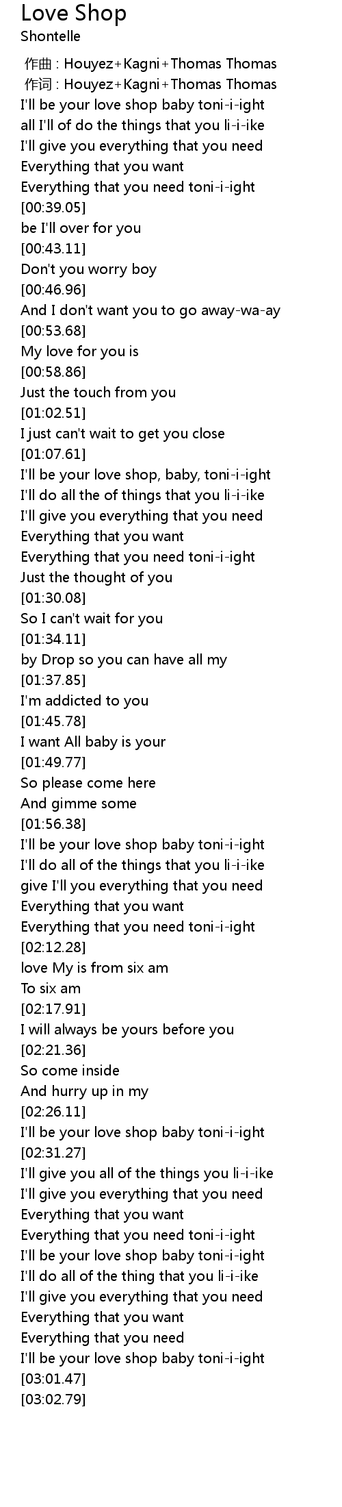 | [02:57.07] | I' ll be your love shop baby toniiight |