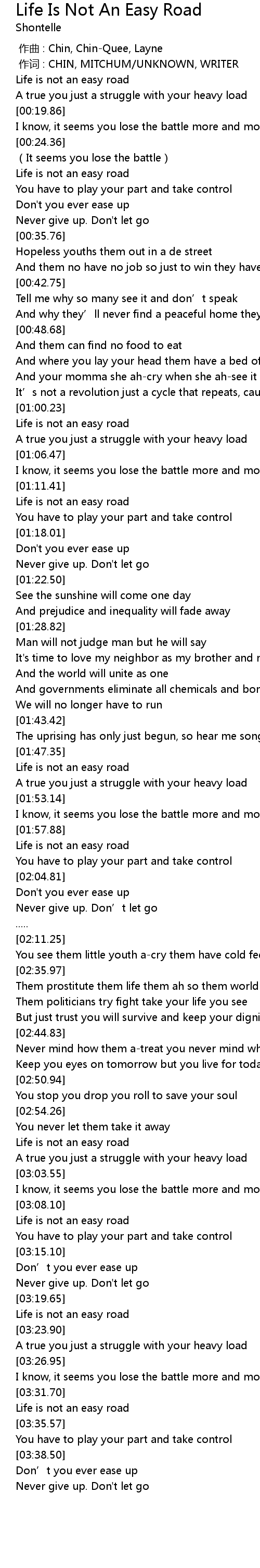 | [03:32.38] | Life is not an easy road |