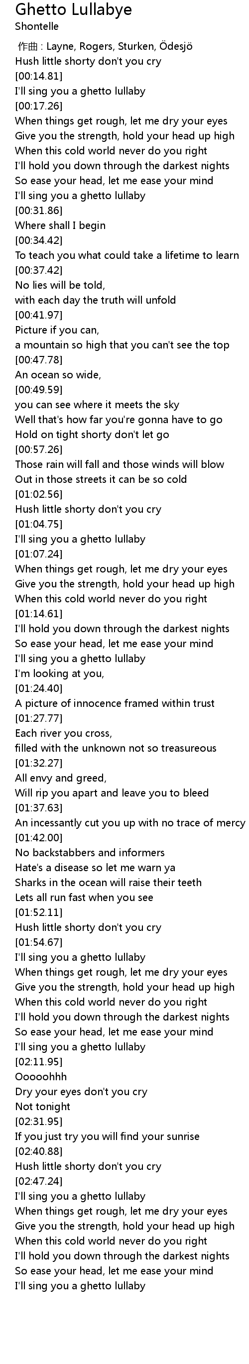 | [00:15.31] | I' ll sing you a ghetto lullaby |