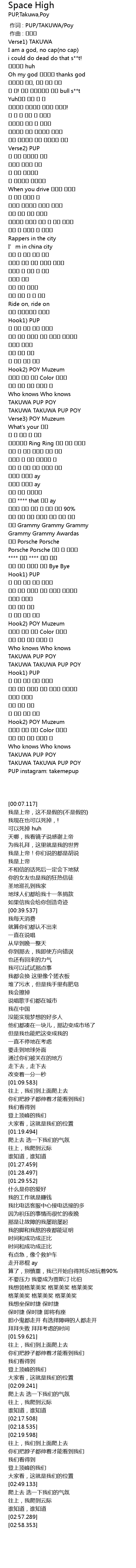 | [00:00.000] | 作词 : PUP/TAKUWA/Poy |